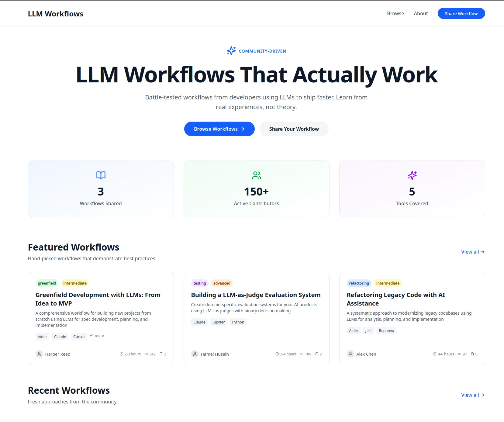 I was pretty happy with the overall project, it was about 70% done and I was creating the content for it when my good friend Jacob Matson gave me a better idea. Instead of a review of tools, what about a place where you can share, capture, and find AI and LLM-related workflows?